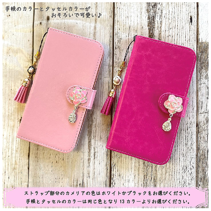 当店人気のカメリアシリーズにタッセル付きが新登場!! 手帳型スマホケース本体&タッセルは13色からお選びいただけます。